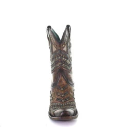 Tobacco Overlay with Embroidery and Studs Western Boot.