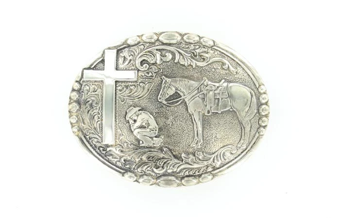 Antique Silver Cowboy Prayer Western Buckle.