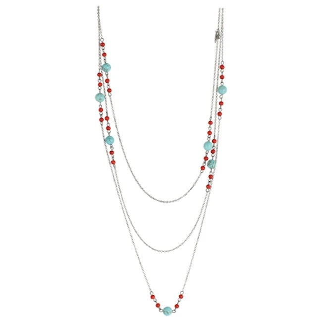 Silver Wrap Style Necklace with Turquoise and Red Beads.