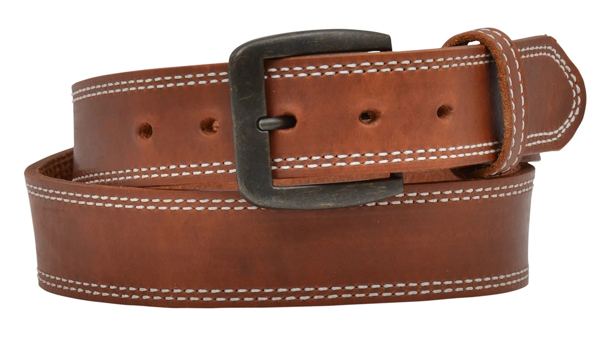 Tan Harness Western Belt with Double Row Contrasting Stitching.