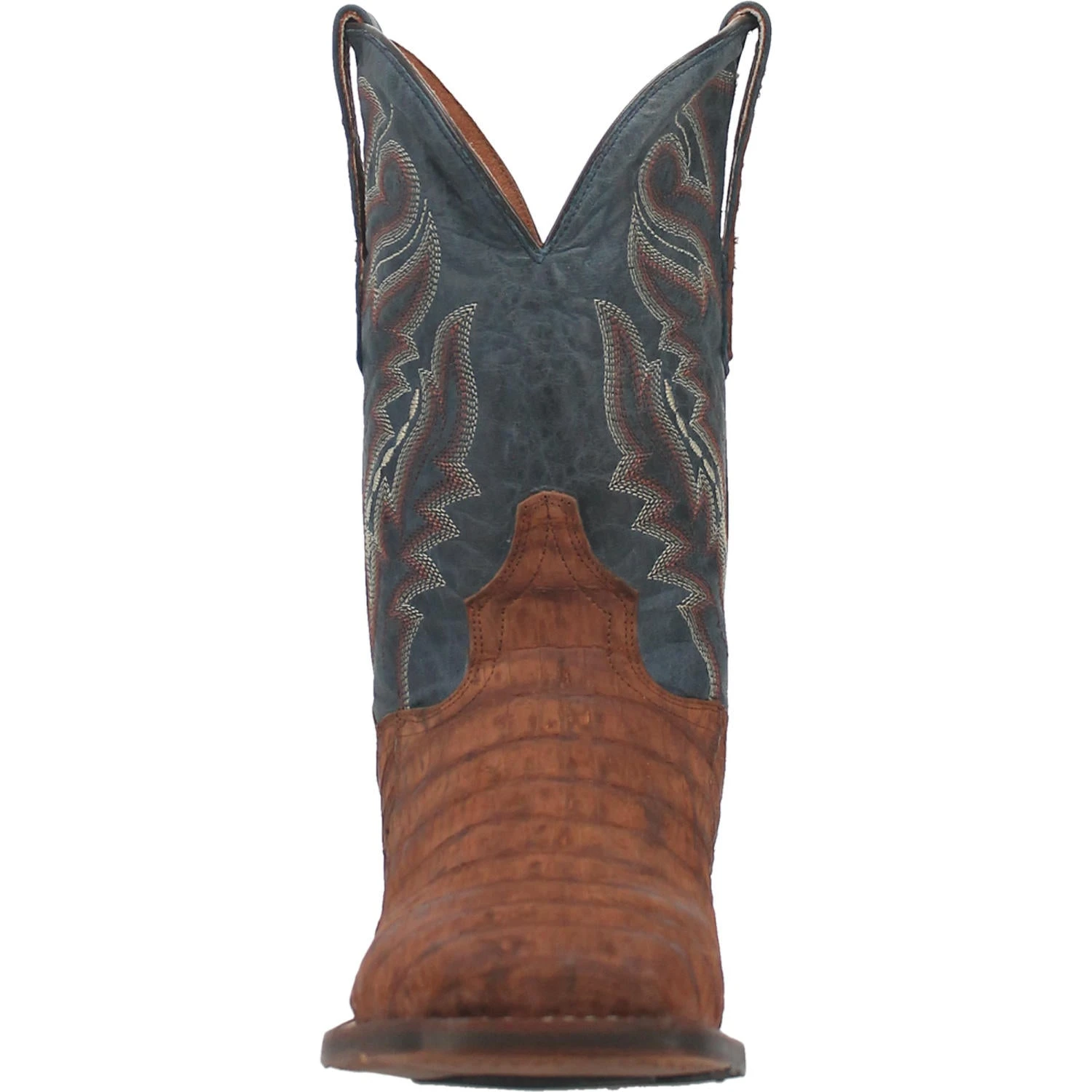 Cognac Caiman and Distressed Blue Mickey Western Boot.