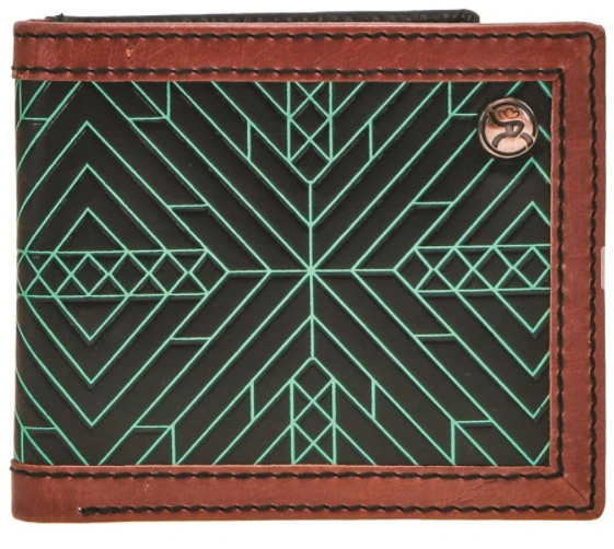 Black and Brown with Turquoise Aztec Pattern Roughy Neon Moon Bi-Fold Wallet.