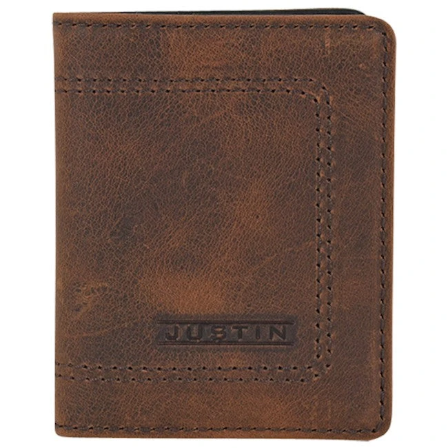Brown Pull Up Leather Card Wallet with Stitch Detail.