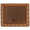 Mossy Oak Breakup Rodeo Wallet with 12 Gauge Shotgun Shell Concho and Brown Leather Overlay on the Front Corner.