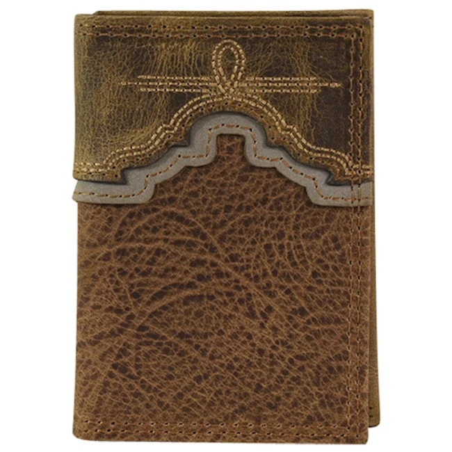 Dark Brown Embossed Buffalo and Weathered Brown Yokes Tri-Fold Wallet.
