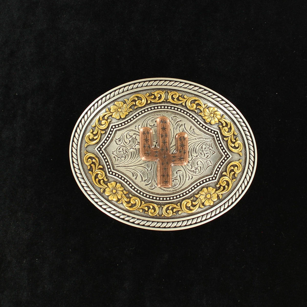 Antique Silver with Copper Cactus Motif and Antique Gold Floral Design Border.