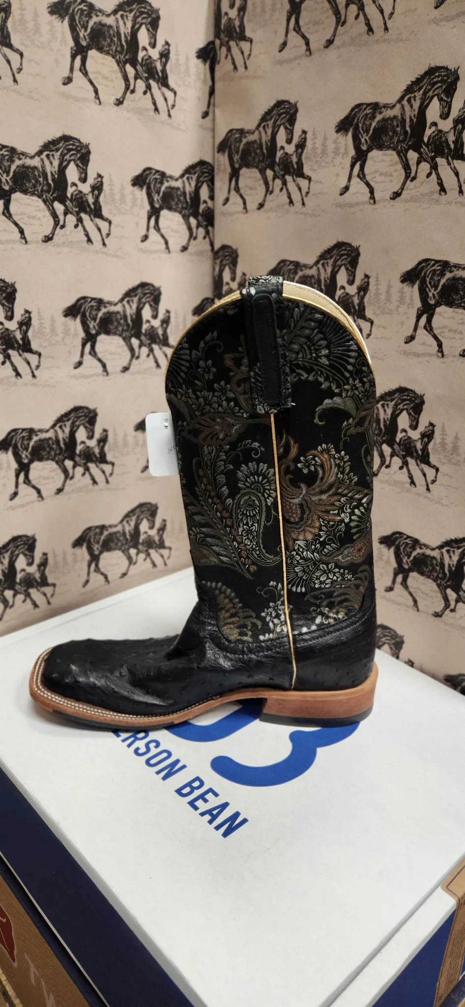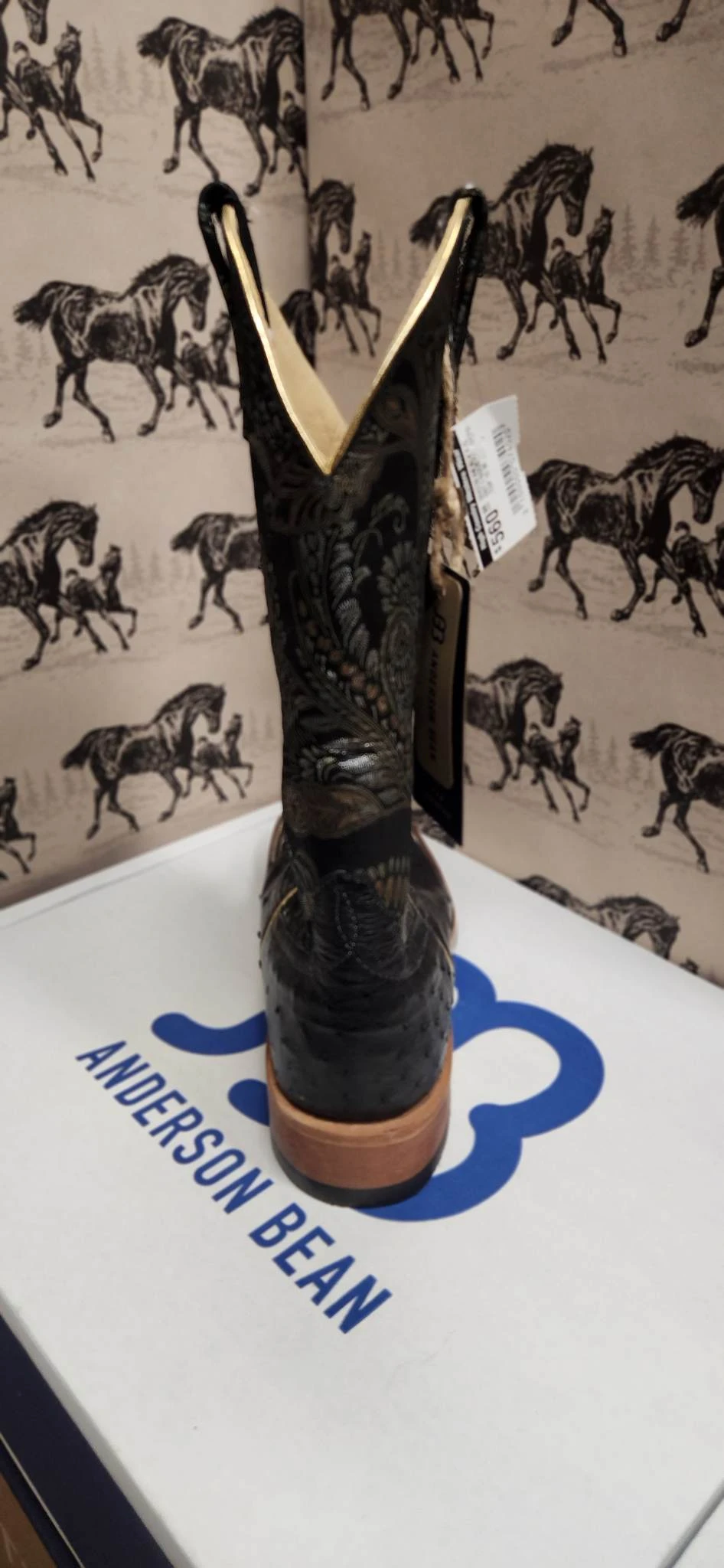 Black Full Quill Ostrich and Gold Del Gato Western Boot.