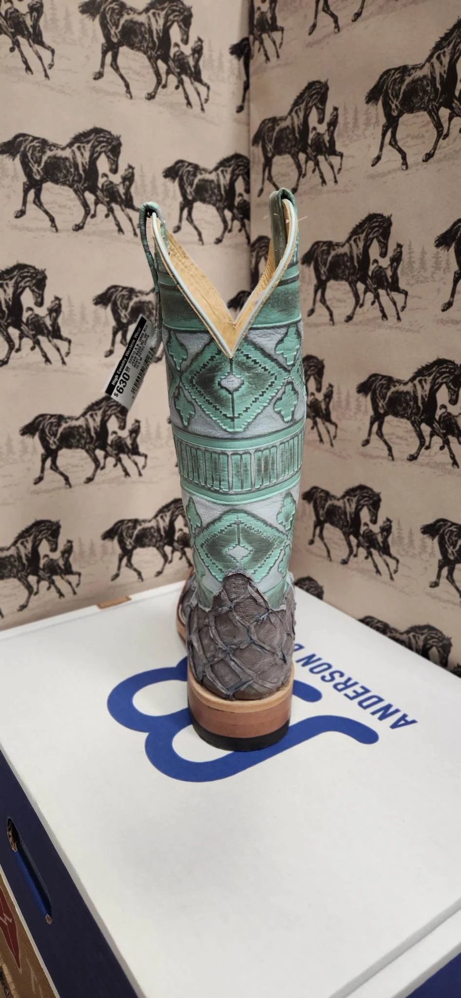 Blue Jean Bass and Mint Aztec Western Boot.