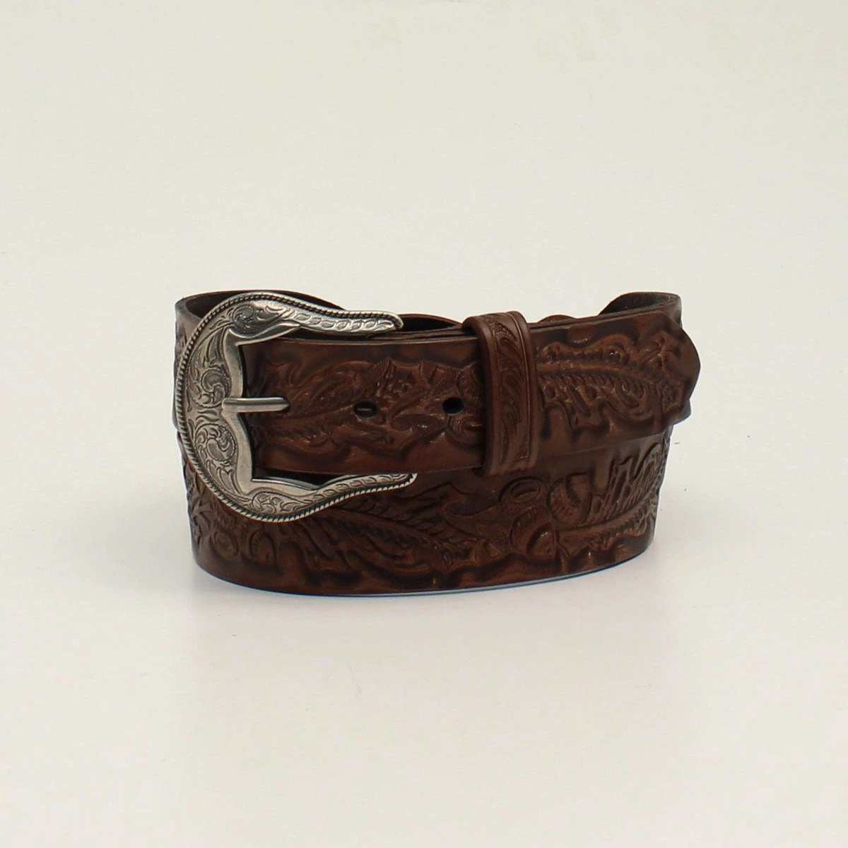 Brown Acorn Embossed Western Belt with Braided Sections.