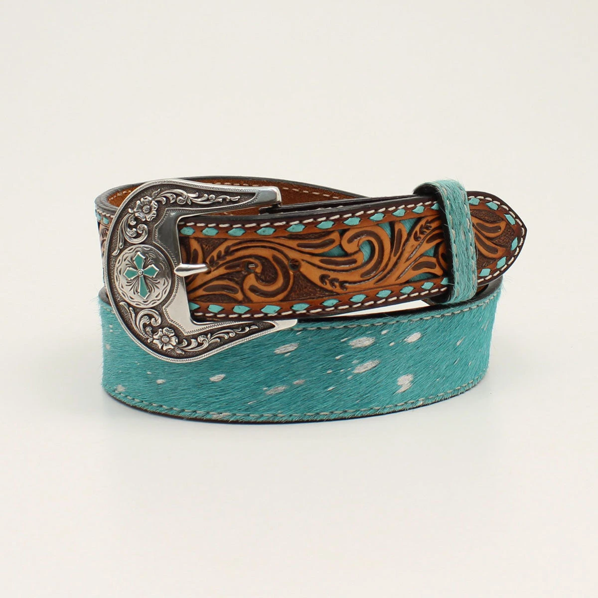 Turquoise and Metallic Silver Calf Hair Western Belt.