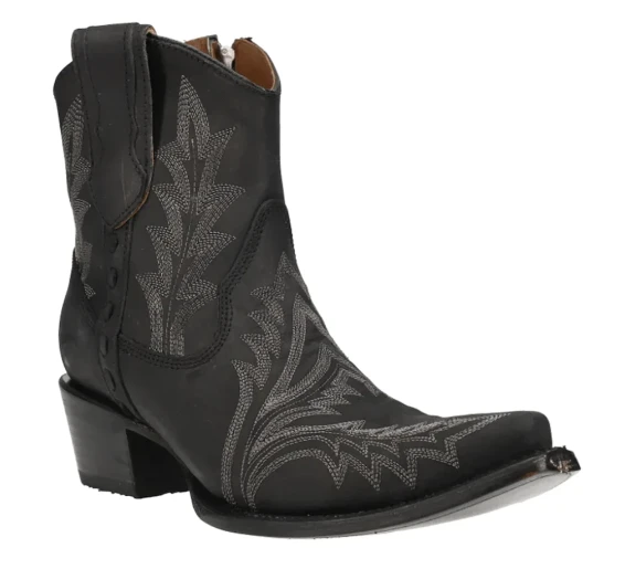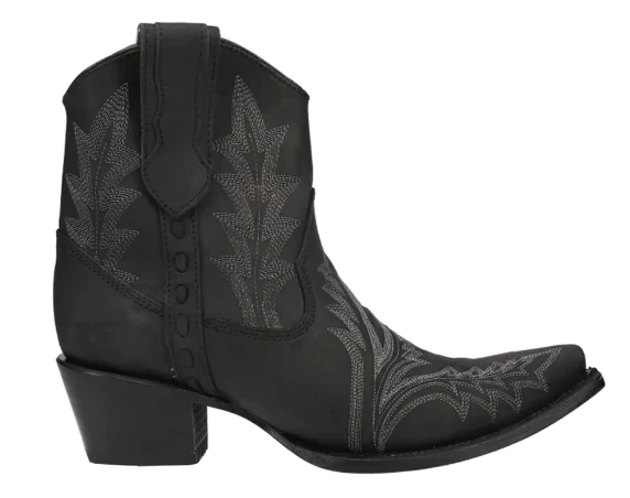 Black Embroidered Zipper Ankle Western Boot.