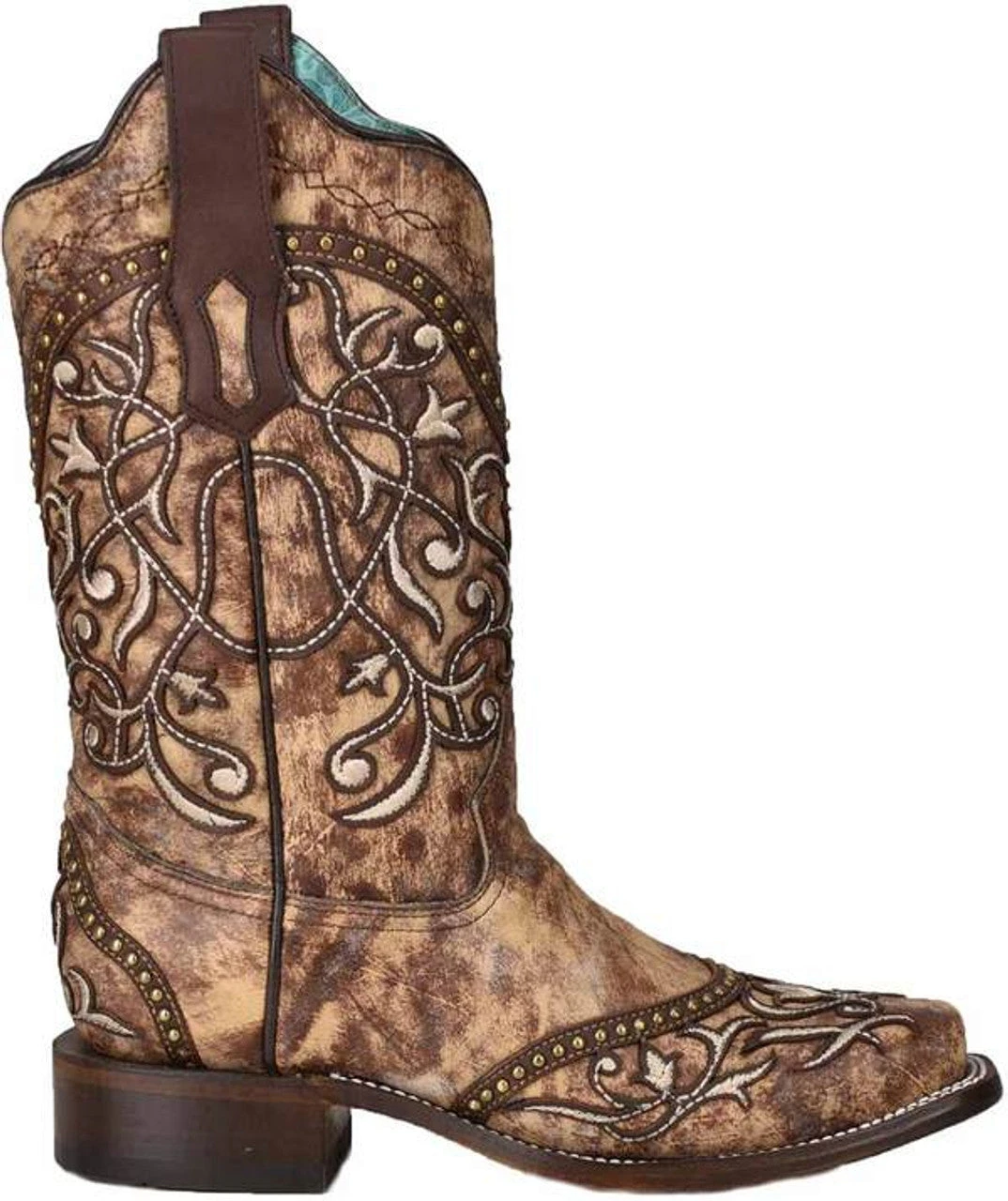Corral Women’s Taupe Overlay & Embroidered with Studs Square Toe