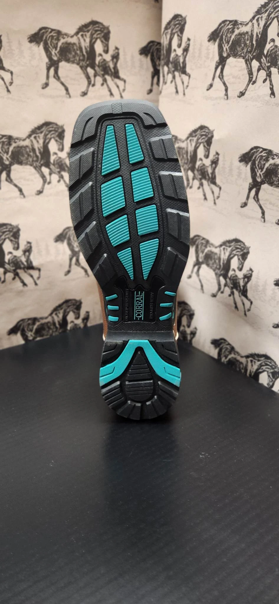 Brown with Floral Embroidery Hydro Resistant Work Boot.