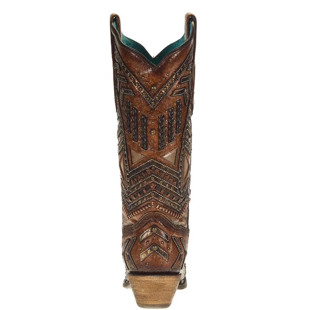 Tabaco Overlay with Embroidery and Studs Western Boot.