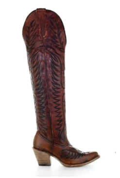 Cognac Embroidered Western Boot.