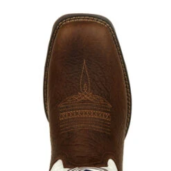 Bay Brown and White Western Boot with Distressed Flag Embroidery.