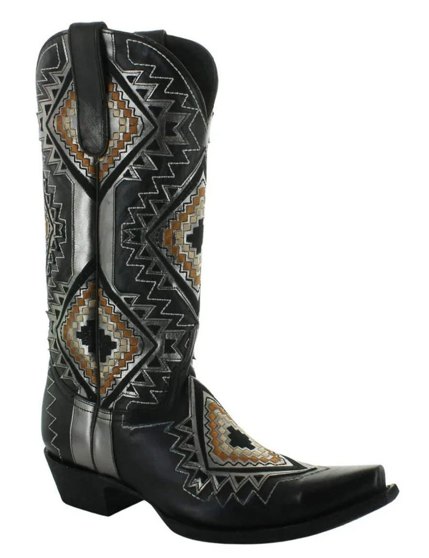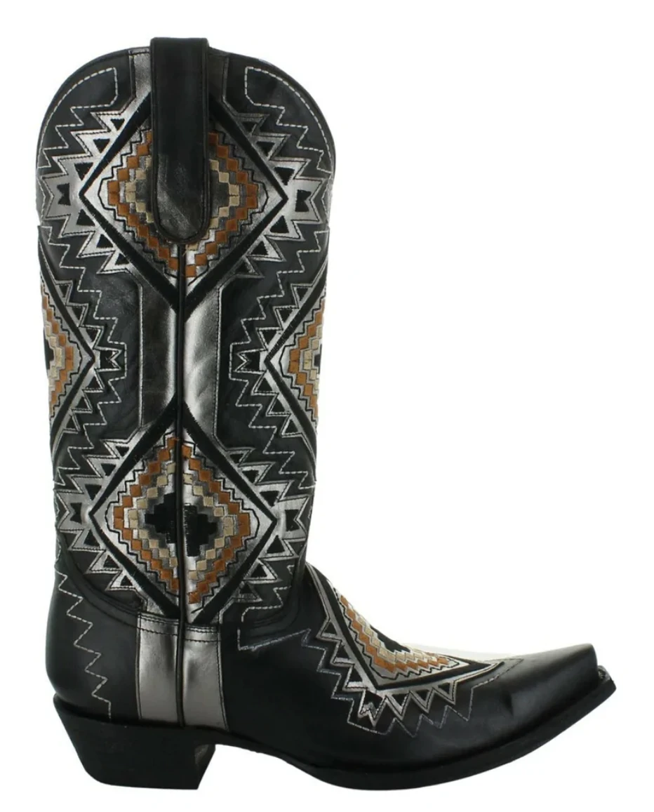 Black with Silver Underlay, Beige and Rust Embroidery Kayenta Western Boot.
