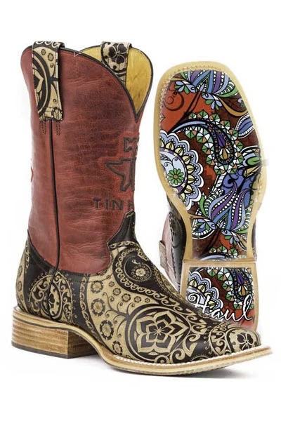 Brown Vamp with Paisley Lazer and Printed Pattern Paisley Rocks Boot with Obvious Artful Sole.