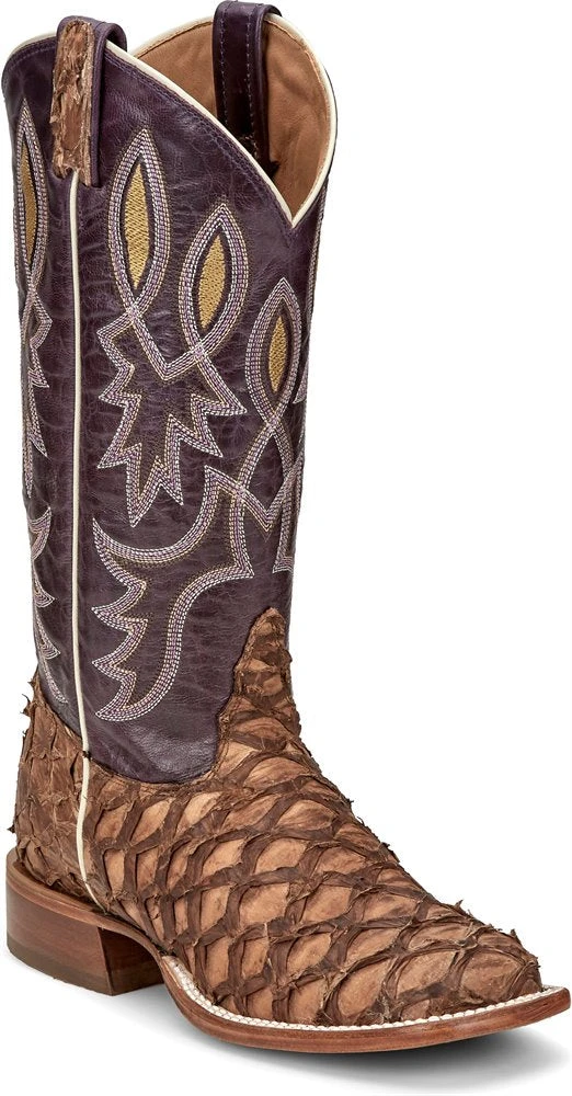 Chocolate Delora Pirarucu Boot with with Purple Tops.
