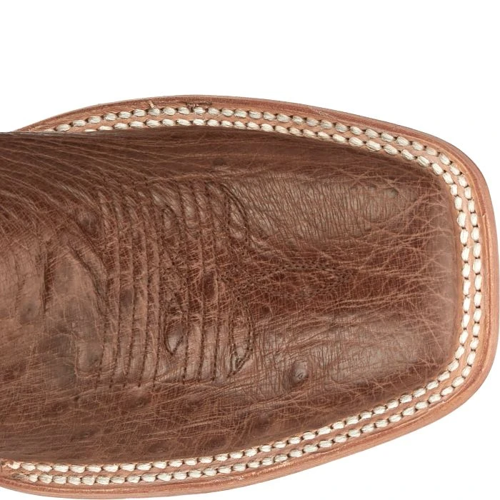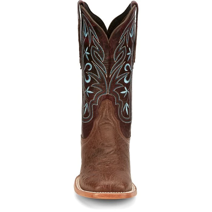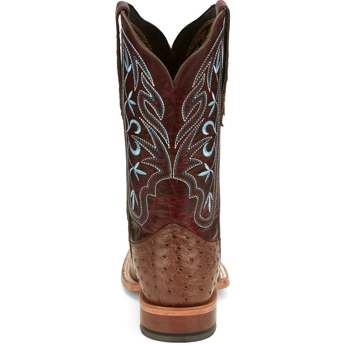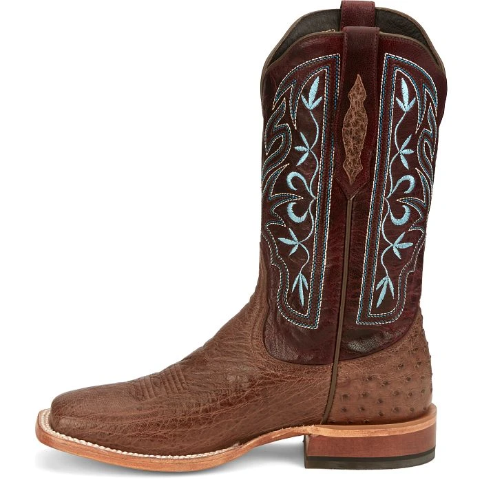 Tabac Smooth Ostrich and Redblood Cowhide with Scrolled Sky Blue Stitching Tinrose Western Boot.