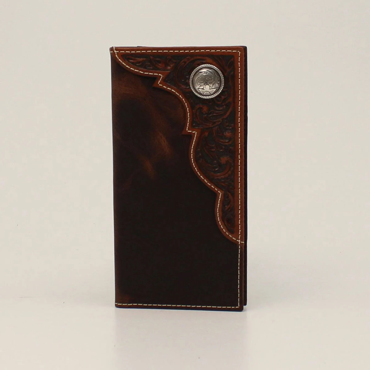 Brown Rodeo Wallet with Floral Embossed Overlay and Concho.